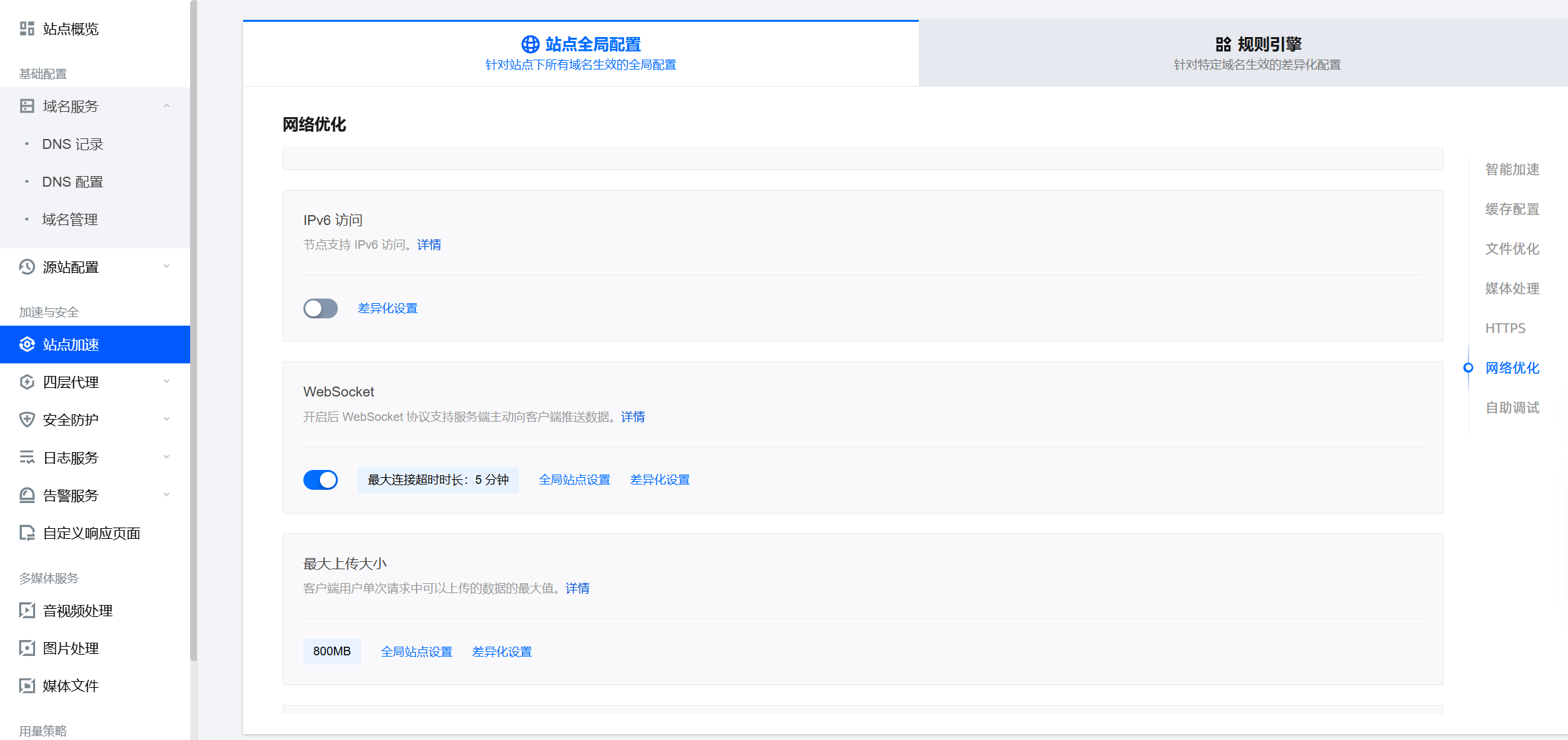 以我使用的EdgeOne为例,EdgeOne默认不开启Websocket支持
