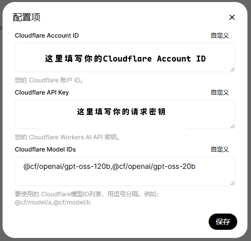 ,如果你要调用其他模型请参考Cloudflare的文档(以上只适用于responses端点的模型)